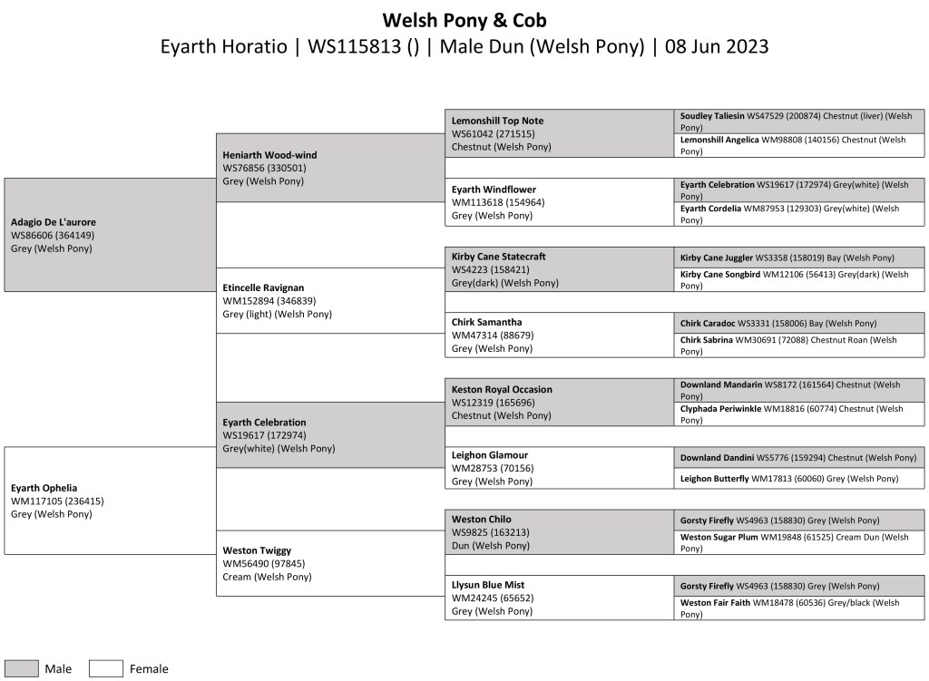 Bred from the prestigious Eyarth Stud, and purchased as a foal just like Hermes a few years earlier, Eyarth Horatio comes from the third and final crop of foals by our stallion Adagio de l’Aurore in North Wales.